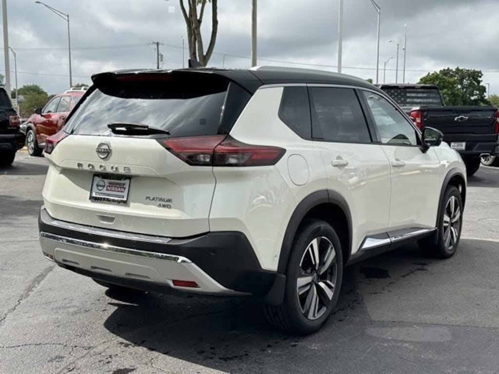 2023 Nissan Rogue Platinum Pearl White Tricoat/Super Black 28/34 City/Highway MPG Nissan Certified Details: